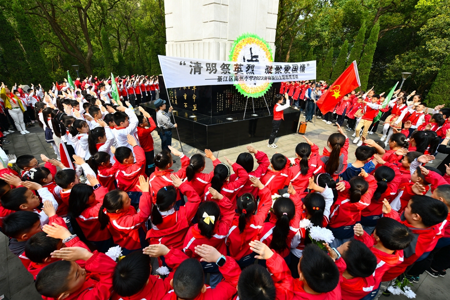 2023年4月3日,重庆市綦江区南州小学在烈士陵园开展“清明祭英烈 凝聚爱国情”清明祭扫主题教育活动。新华网发(重庆市綦江区融媒体中心 王京华 摄)pagebreak