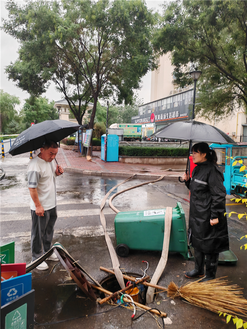 2024年8月8日,王冬梅到辖区奥园小区排查市政管网出水口积水情况。新华网发(资料图)