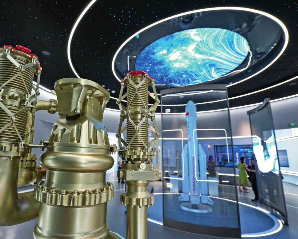 在无锡商业航天展示馆拍摄的火箭发动机模型(2024年9月9日摄) 杨磊摄/本刊