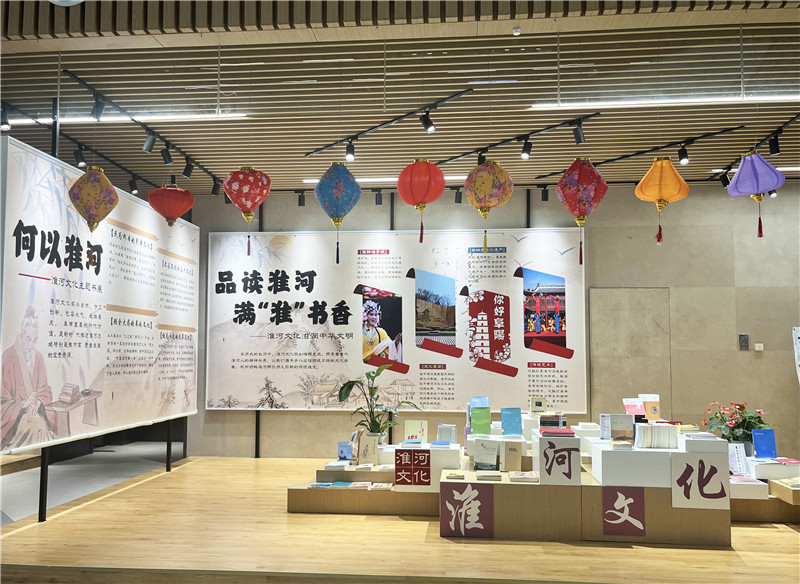 2024年9月25日,阜阳市图书馆开展“品读淮河,满‘淮’书香”——淮河文化专题书展。新华网发(姜丽 摄)