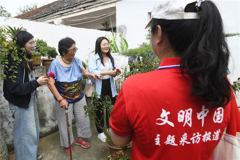 2024年9月27日,“文明中国”主题采访报道组在“全国文明村镇”淮罗村参观采访。新华网发(王彪 摄)