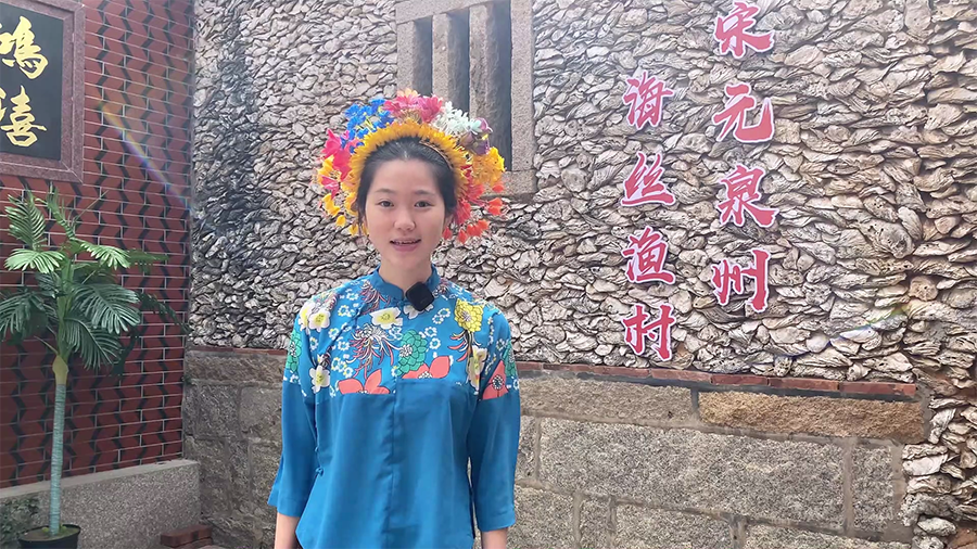 “后来妈妈和奶奶不仅给我讲蟳埔的文化,还给我讲泉州古城的文化。泉州申遗成功,“蟳埔女习俗”也是国家级非遗,因此我利用课余时间给来到蟳埔的游客进行讲解,我想用自己的力量为我们的泉州、为我们的蟳埔作贡献,把泉州和蟳埔文化一起带上国际的舞台。”黄馨怡说。