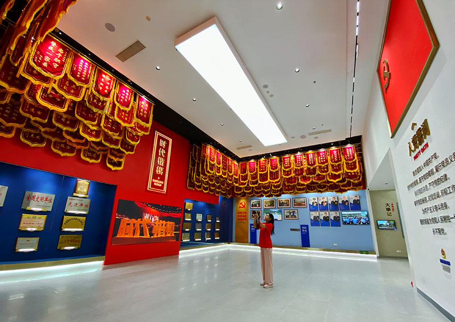 9月9日,“文明中国”主题采访报道组在挂满锦旗的时代楷模“漳州110”忠诚馆内采风。新华网发(福建文明风网 颜财斌 摄)