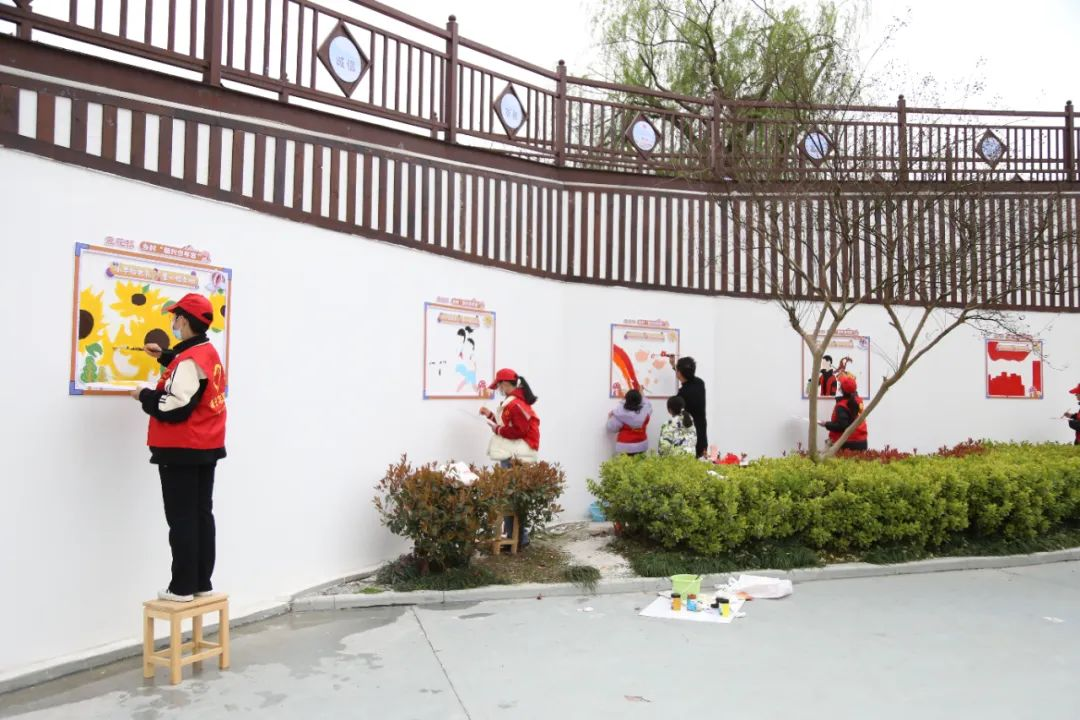2023年3月18日,海宁市袁花镇乡村少年宫组织孩子们在新时代文明实践所绘制文明墙画。(浙江省海宁市文明办供图)