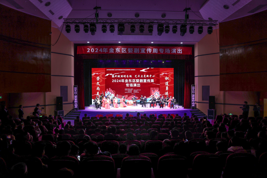 金东区作为婺剧之乡,高度重视《条例》宣传与贯彻落实工作,在全市率先策划金东区婺剧宣传周系列活动,着力打造1248活动体系,即围绕一个主题,聚焦婺剧艺术传承发展专题视察、婺剧专场演出两个专项,突出婺剧艺术传播推广、婺剧主题展示展演、婺剧场景参观体验、婺剧文化宣传品牌打造等四个方面内容,开展“我们的村戏”大赛、婺剧骨干培训班等八项宣传推广活动,在全区形成“爱婺剧、学婺剧、唱婺剧”的浓厚社会氛围。
