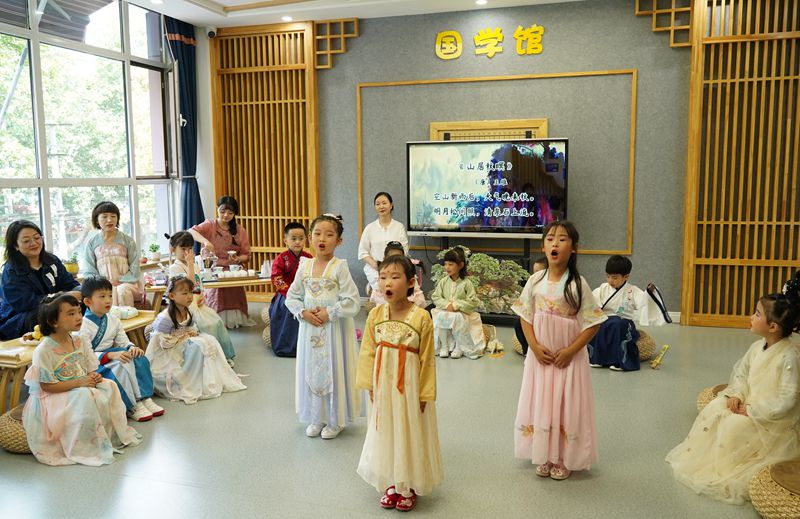 天水市各级幼儿园注重将幼儿教育与中华优秀传统节日文化相结合,积极构建幼儿真心喜爱、终身受益的传统文化课程体系。图为天水市实验幼儿园举办的中秋诗会。(天水市文明办供图)pagebreak