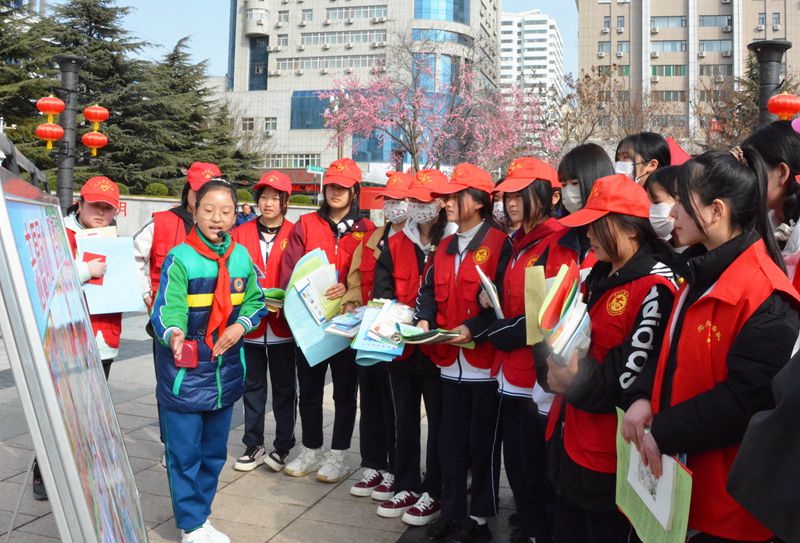 天水市扎实开展“志愿同心•服务同行”学雷锋文明实践我行动主题活动,志愿服务活动遍及城乡,志愿服务理念日益深入人心。图为志愿者在观看学习志愿服务展板。(天水市文明办供图)pagebreak