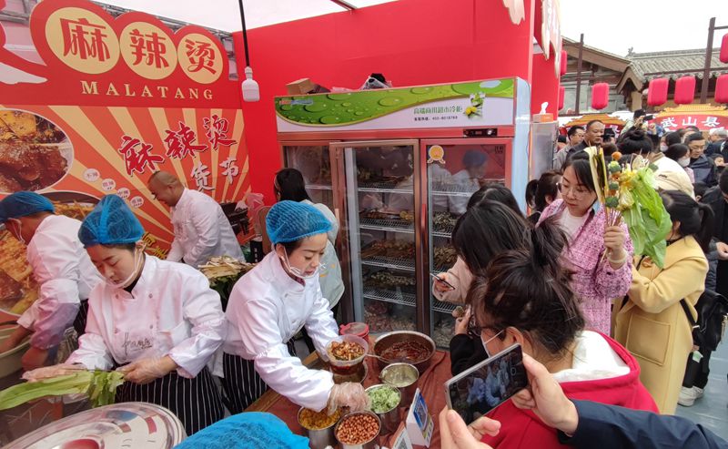 2024年3月以来,“天水麻辣烫”火爆出圈,吸引了众多美食达人关注,纷纷到天水打卡、探店。这是“天水麻辣烫吃货节”期间,来自全国各地的游客在天水古城共赴一场热辣滚烫的美食之旅。(天水市文明办供图)pagebreak