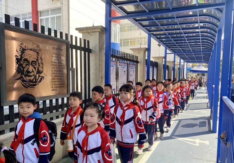 每天放学,浙江省宁波市李惠利小学学生在“最美上学路”排队有序回家。(宁波市文明办供图)