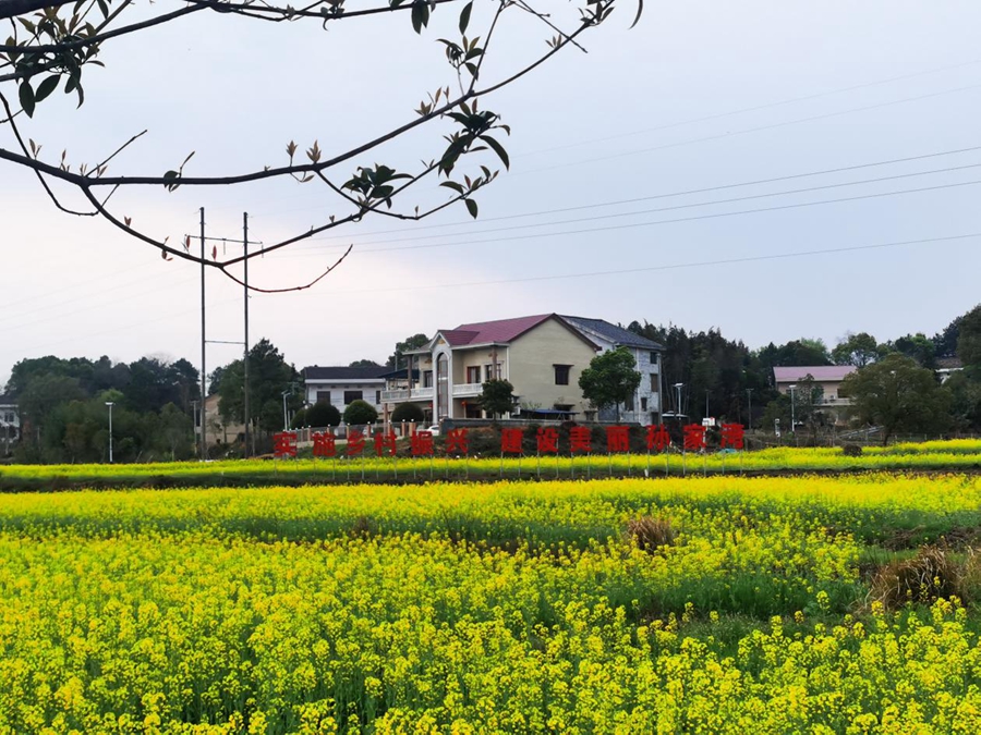 油菜花田里的村杉坡幸福屋场(资料图)。新华网发(株洲文明网 龙建清 摄)