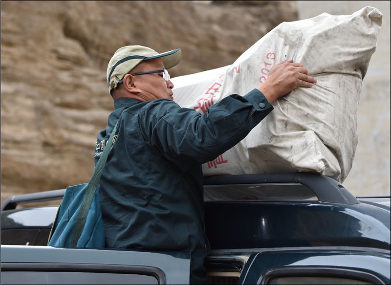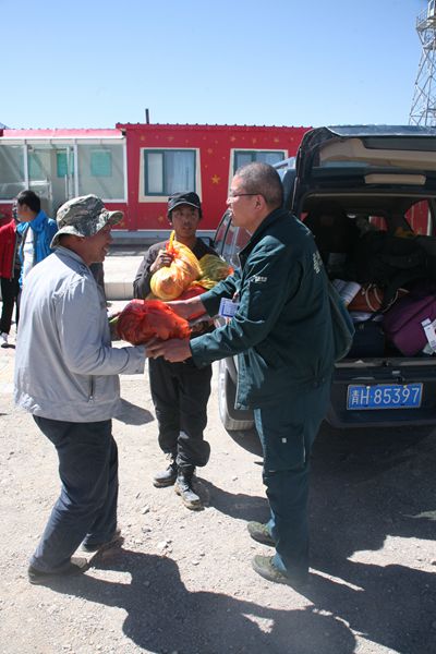 资料图:中国邮政集团有限公司格尔木市分公司投递员葛军正在“格唐邮路”沿线投递包裹。新华网发(中国邮政集团有限公司格尔木市分公司供图)