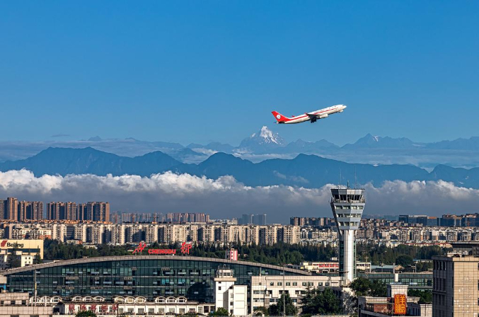 一架飞机从成都双流国际机场起飞。(四川航空公司供图)