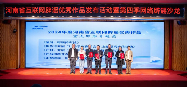 创新传播方式,唱响辟谣之声。12月4日,2024年度河南省互联网辟谣优秀作品发布活动暨“e起辟谣 清朗有我”网络辟谣沙龙在华北水利水电大学举行。《<清明上河图>里辟谣有妙方》《一指之念》《漯河:辟谣传声社》 等35部作品获评河南省互联网辟谣优秀作品,焦作市委网信办、郑州大学等8家单位获评优秀组织单位。