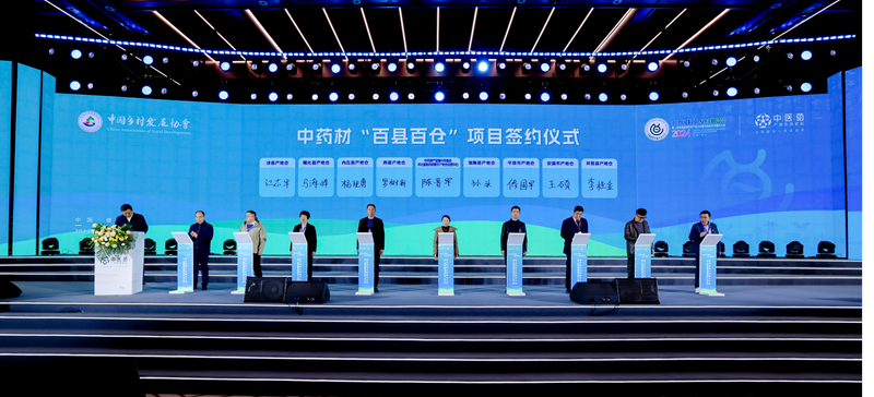 中国乡村发展协会与河北省安国市、平泉市、涉县、隆化县、内丘县、蔚县、馆陶县、井陉县等8县市签署中药材“百县百仓”项目共建协议。