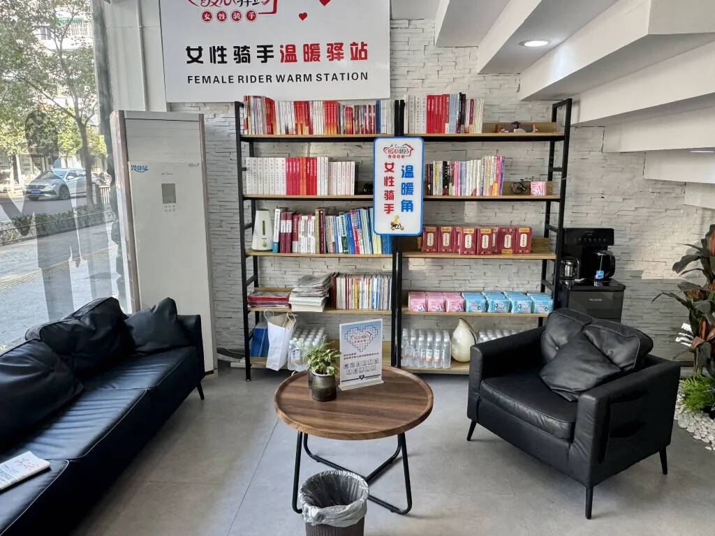 在西关街道骑手暖心驿站内,记者注意到还设有女性骑手专区,可为女性骑手提供姜茶、卫生用品、更衣区等女性特色产品和服务。“为了不影响月底业绩,就算生理期那两天,我都会忍痛跑单,实在难受了,我就靠着电动车歇一下。现在好了,有了女性骑手驿站,再也不怕没地方休息了。”当了一年外卖骑手的范娟说,驿站给新就业群体提供了诸多便利,还让她能和其他小伙伴有了更多交流。