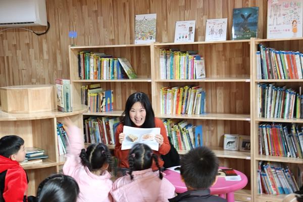 浙江嘉兴梅里有为图书馆,图书馆创始人在给孩子们讲故事。受访者供图
