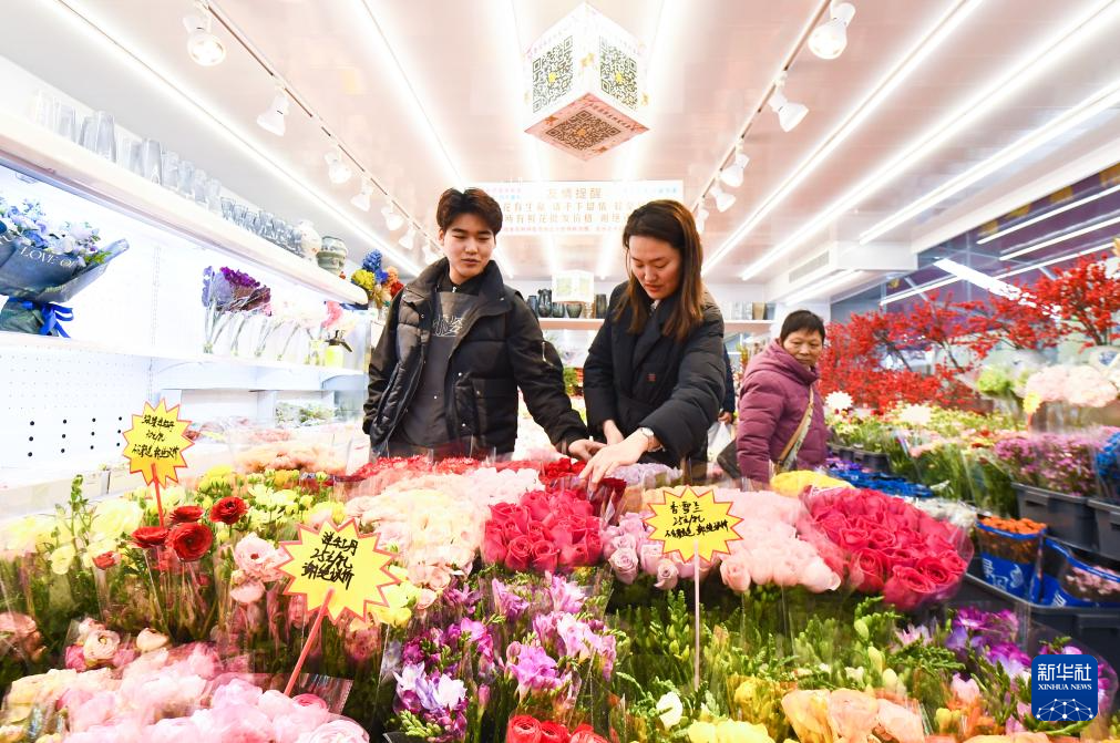 1月24日,人们在甘肃省临夏回族自治州临夏县北塬镇一花卉市场选购鲜花。