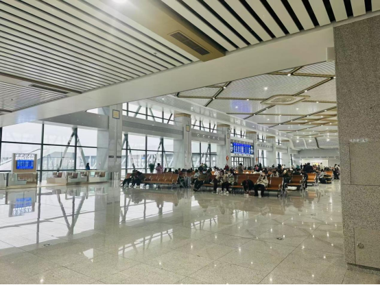 大年初三,宽敞明亮的莱州站候车大厅。新华网 刘娜摄