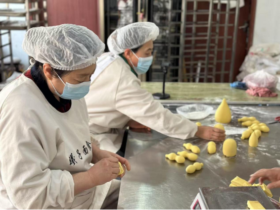 大年初四,工作室在制作寿桃面塑。新华网 刘娜摄