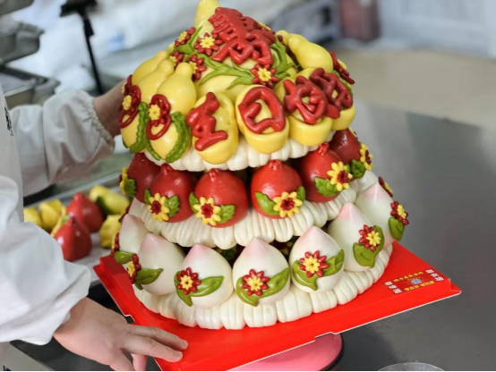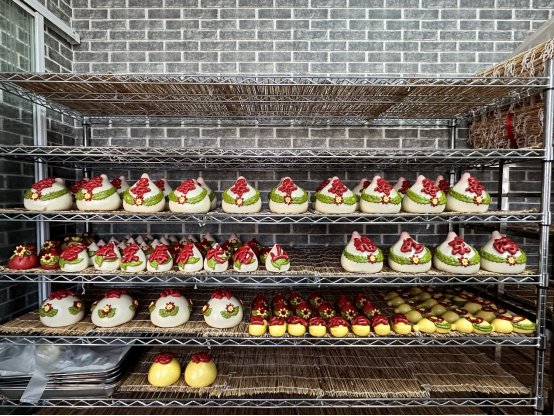 色彩运用也是莱州面塑的一大亮点。李雪彦介绍:“红色来自红曲米,绿色来自菠菜,粉色来自仙人掌果,黄色来自南瓜,紫色来自蝶豆花。我们采用天然植物颜料上色,色彩鲜艳且环保健康,经过蒸制后,颜色更加鲜艳持久。”除了传统的面塑设计,为了满足不同客户的个性化需求,面塑店还提供私人订制服务。