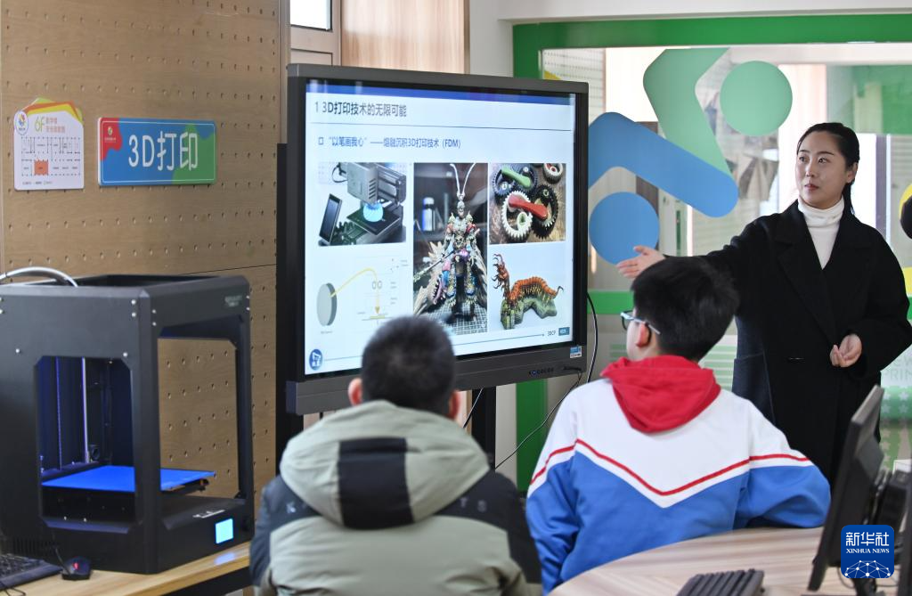 2月17日,天津市和平区新星小学的科学校外辅导员给在“开学第一课”上为学生讲解3D打印知识。