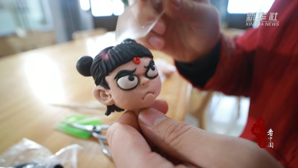 近日,在山东省菏泽市牡丹区小留镇面塑非遗工坊,当地手艺人正在根据电影《哪吒之魔童闹海》创作面塑作品。作品采用国家级非物质文化遗产代表性项目曹州面人制作技艺,主要手法有捏、搓、揉、压、刻等。由面泥制作而成的“哪吒”表情灵动、栩栩如生。