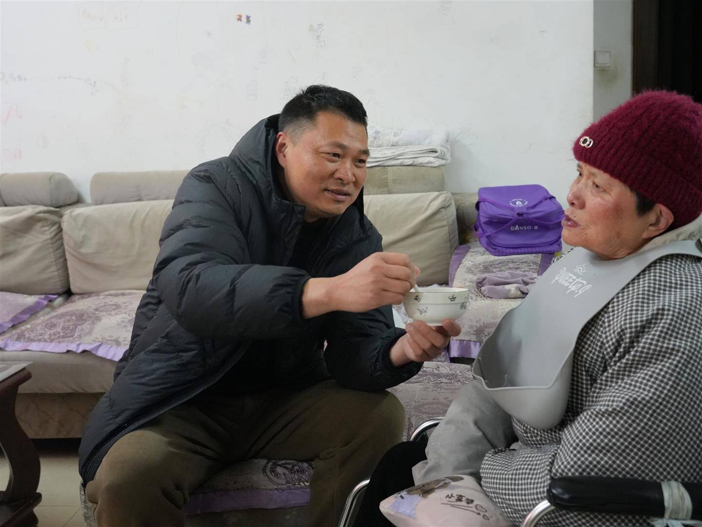 刚刚过去的春节,占高锋跟母亲二人在家里吃了一餐简单又温馨的年夜饭,妻子带着一双儿女回外婆家。“外婆家好几年没回去了,今年孩子们也一起去。”占高锋说,平日里照顾母亲不仅是自己一人事而是全家共同协作。