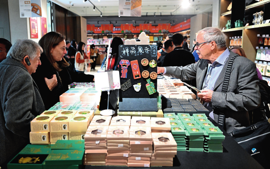 外宾在河南博物院选购文创产品(2024年11月4日摄)李嘉南摄/本刊