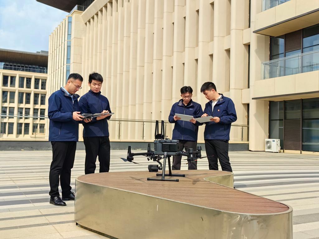 中国星网员工对无人机开展测试工作(3月28日摄)。新华社记者 齐雷杰 摄