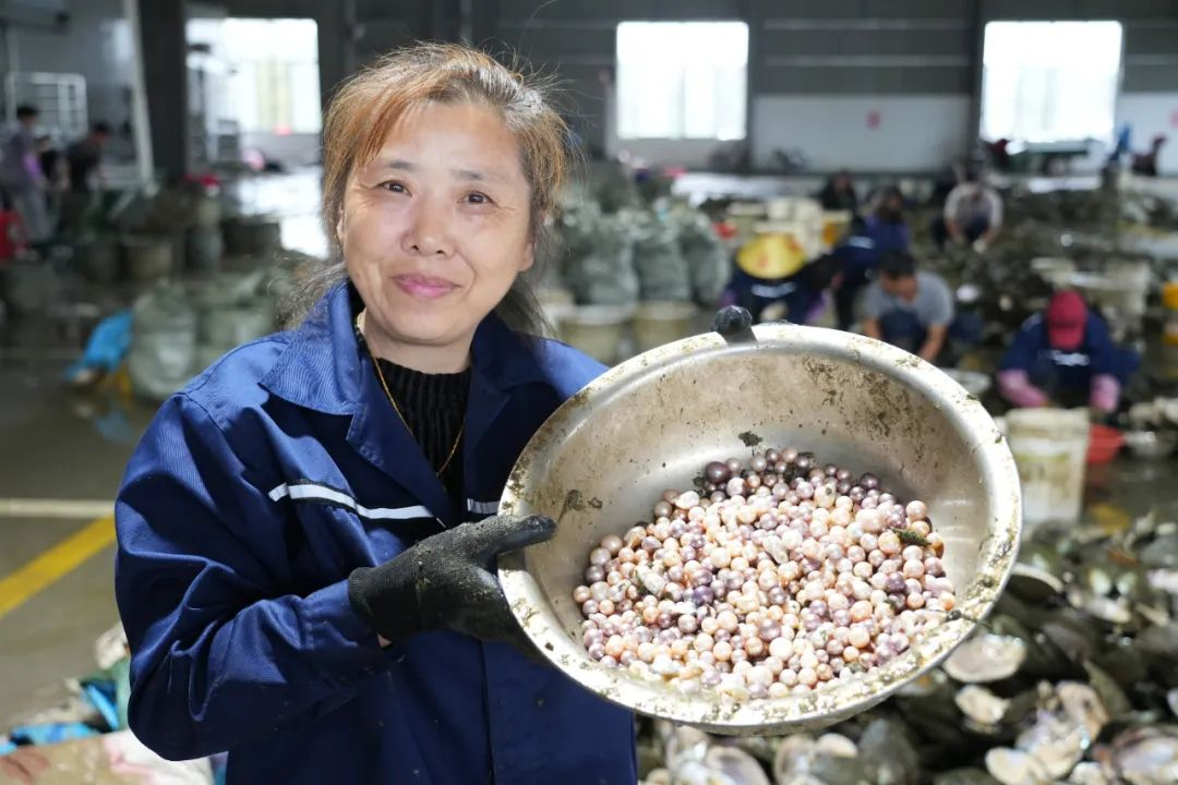 产业的兴旺,不仅在于个体的发展,更在于携手共进。为培养壮大乡村特色农业产业,让乡村振兴之路越走越宽,澧浦镇还走出了一条以强带弱、抱团取暖、共建共享的村际合作新模式。其中里新村和王潭头村共建的剖蚌场共富工坊,则以珍珠蚌加工为抓手,搭乘直播开蚌的热潮,促进了一二三产融合,为乡村共富注入源源不断的动力。里新村党支部书记施建富介绍,剖蚌场共富工坊带动周边劳动力百余人,每年为里新村和王潭头村集体分别增收70万元和50万元,同时带动在剖蚌场共富工坊工作的村民人均年增收超6万元。