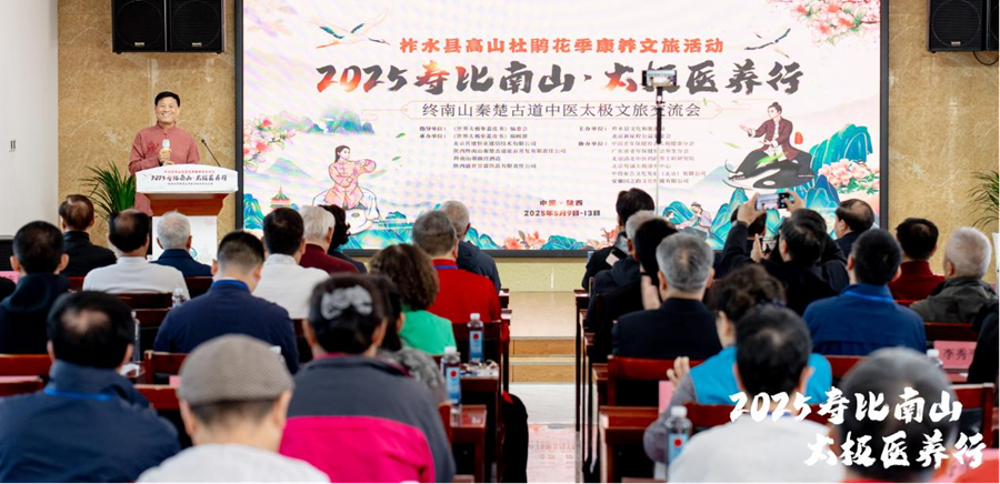 “高山杜鹃花季康养文旅活动暨2025‘寿比南山·太极医养行’终南山秦楚古道中医太极文旅交流会”近日在陕西省商洛市柞水县开幕。活动由《世界太极拳蓝皮书》编委会指导,柞水县文化和旅游局与北京新征程公益基金会联合主办,汇聚国内外300余名太极拳名家、中医专家及康养爱好者,共同探讨太极文化与中医康养、生态文旅的融合发展之路。