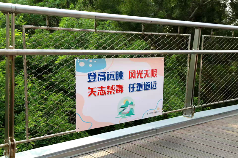 “山海健康步道”的宣传语、标识等装饰,“黑猫警长”以认知毒品、无毒生活也是健康的重要组成部分为理由,说服卫健、园林、城管等相关部门予以支持。