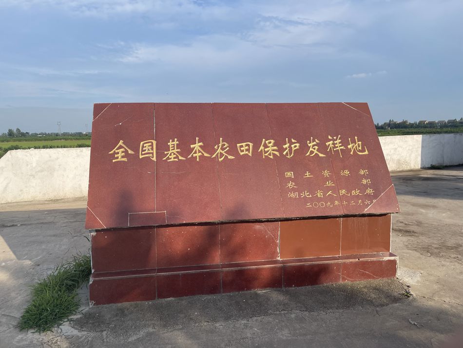 位于监利市毛市镇老河村的“全国基本农田保护发祥地”纪念碑。新华网刘畅 摄