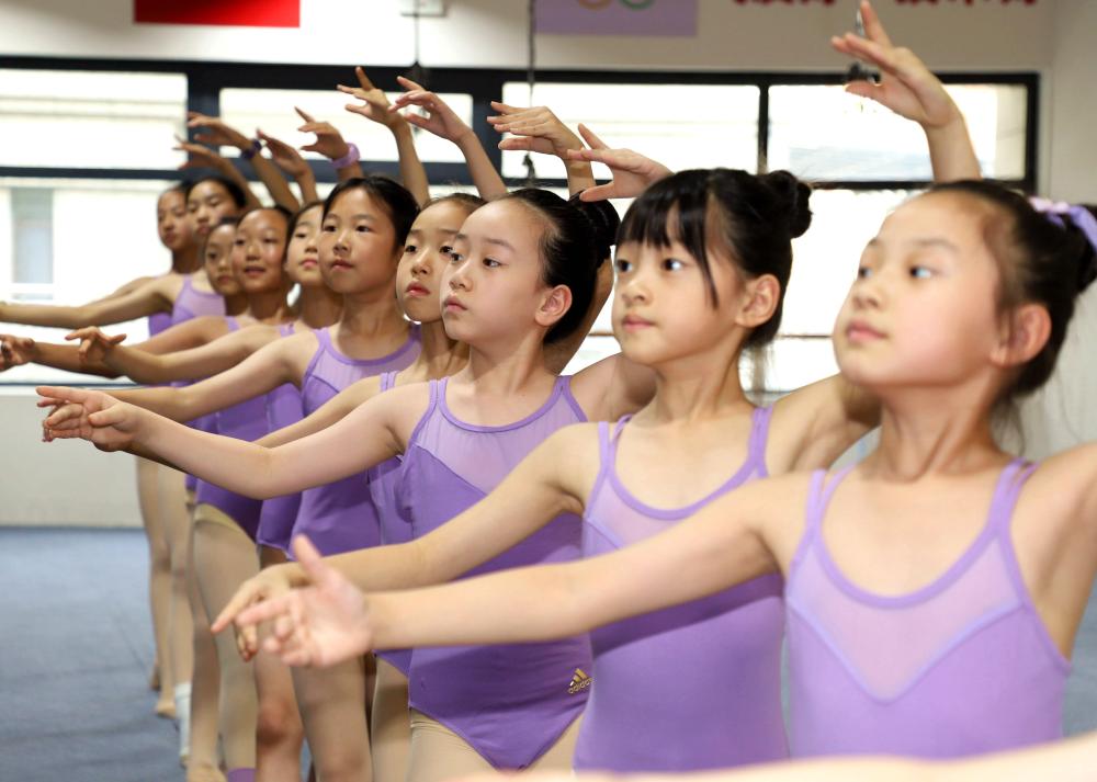7月7日,学生在河南省南阳市一家体育艺术中心学跳舞。