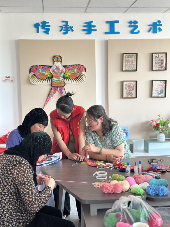 星园路社区内,居民一起学习剁绣。新华网 刘娜 摄