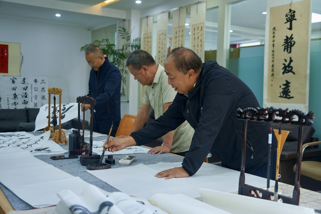 青海省西宁市城北区陶北村农家书屋的书画室里,村民在练习书法。张子琪 摄