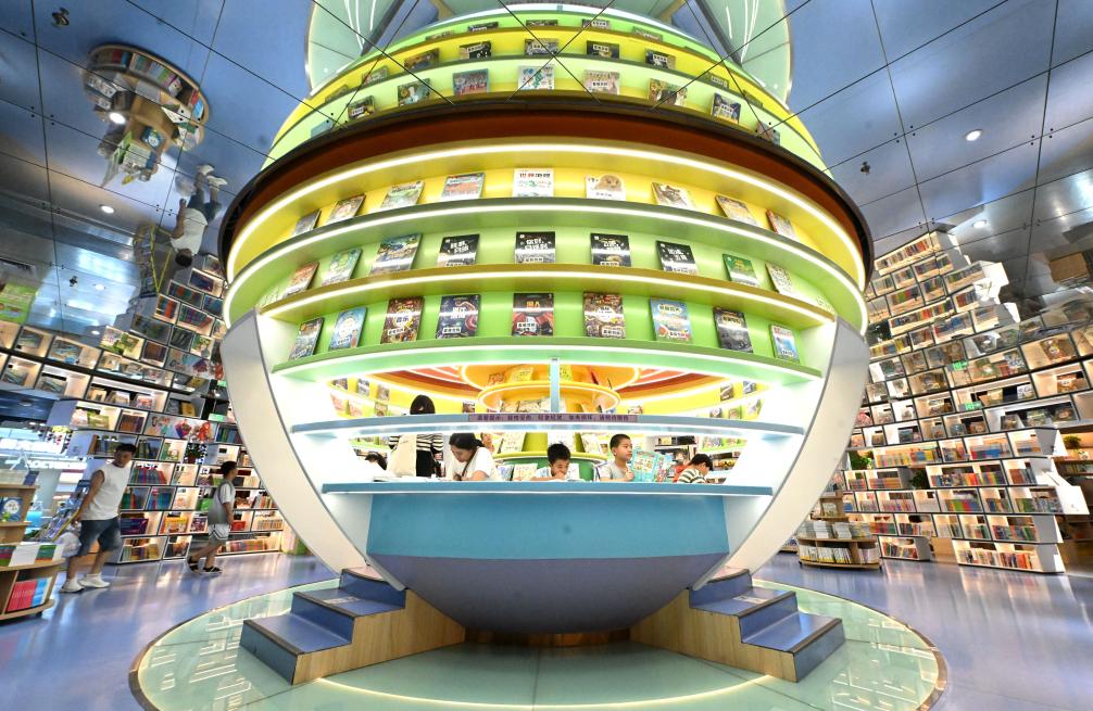 8月11日,小朋友在河北石家庄书城儿童区阅读。