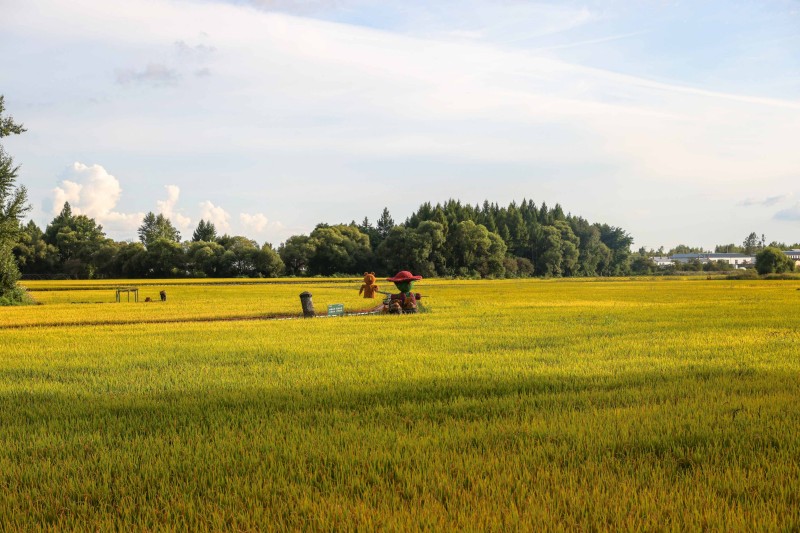 在金色稻田中,当你乘坐小火车来到北星村村口,走在宽敞的柏油路上,看着民房的白墙黛瓦与木质廊檐,以及路旁的鲜花与绿植,你很难将这些与传统的乡村相结合。