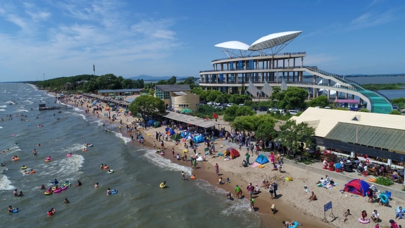 兴凯湖新开流景区夏季游客火爆。鸡西市文体广电和旅游局供图