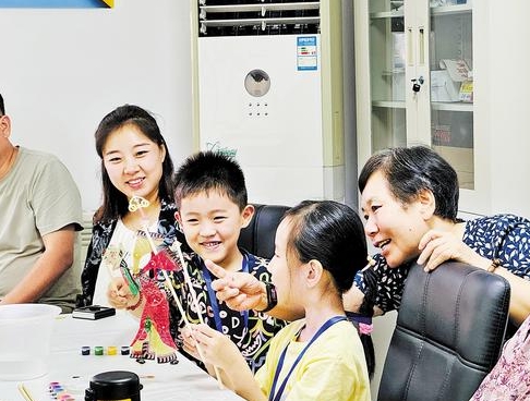 2024年7月,在石家庄市桥西区南长街道保晋南街新时代文明实践站,桥西区“帮小西”公益课堂“非遗手工皮影”开课。图为两位小朋友正在尝试皮影操作。 石家庄市桥西区委宣传部供图