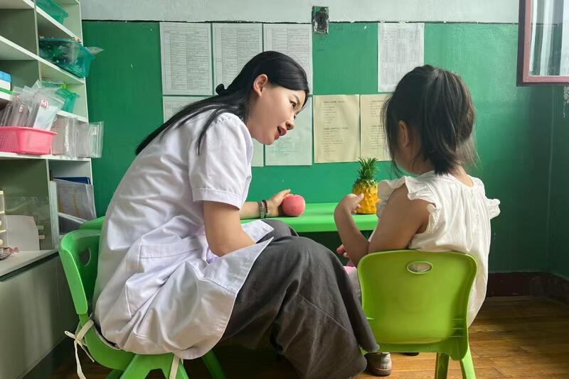 于姗姗对儿童实施康复干预训练。密山市文明办供图