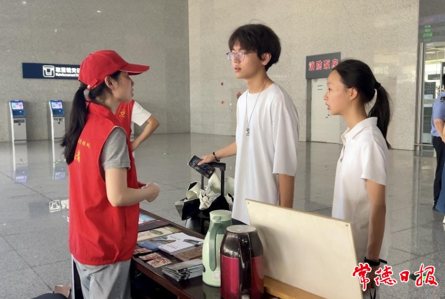 在常德火车站,志愿者为旅客提供咨询引导 伍银 摄