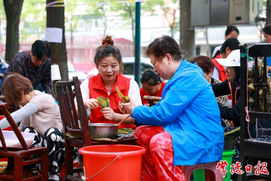 今年端午节期间,武陵区芙蓉街道项家铺社区志愿者与居民一起包粽子 蔡文龙 摄