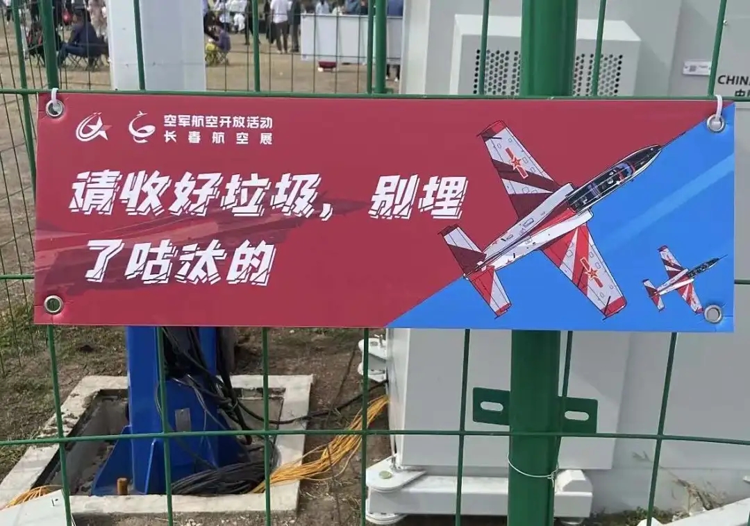 2025长春航空展的文明引导工作充满创意与温度,如:在就餐区,随处可见“光盘行动,别糟践粮食”;在候场区,“好好排队,别加塞儿”“往里头走,里头老敞亮了”“出门多点眼力见,看好老人和小孩”;在观展区,“请保持安静,别吵吵把火的”“请收好垃圾,别埋了咕汰的”“请文明观展,别呜呜喧喧的”……这一系列极具东北地方特色的文明提示语也成为现场的一大亮点,这些朴素直白、生动有趣的提示让观众在会心一笑中将文明观展理念默默植入心间。
