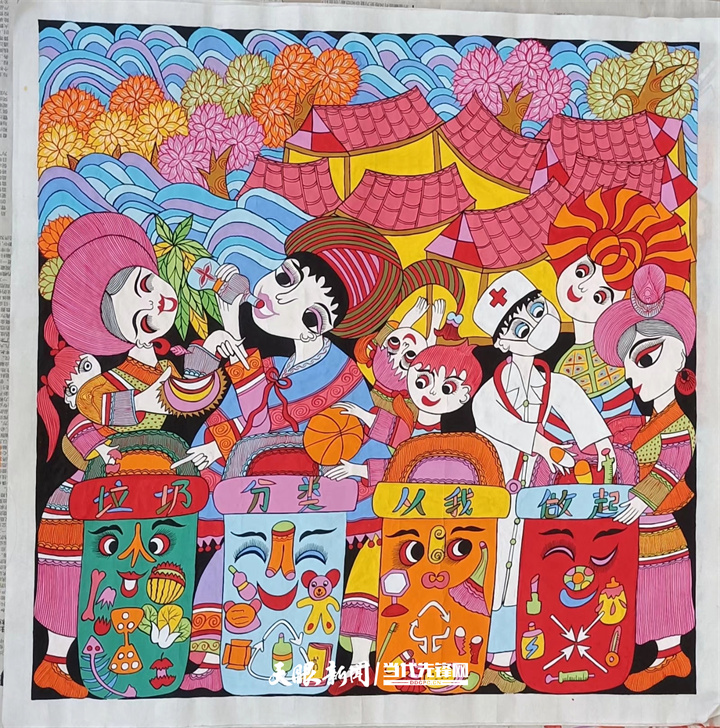 水城画历来纯朴自然、绚烂活泼,是独具特色的“村画”,其融合蜡染、挑花等工艺技法,以夸张、艳丽的风格表现风土人情、自然景观。如今,它又增添了新的标签——村画里话文明。
