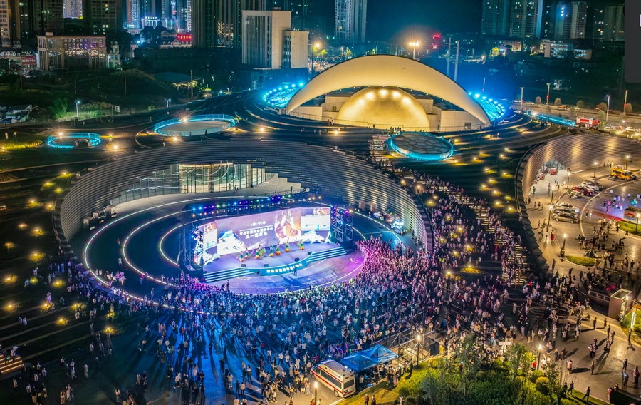 安岳石窟数字展示中心夜景。安岳石窟研究院供图