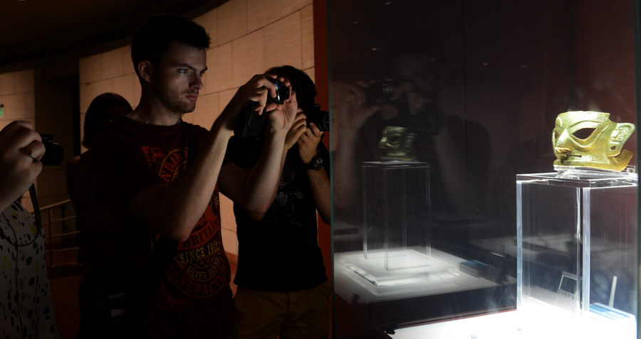 游客参观成都金沙遗址博物馆。赵兵 摄