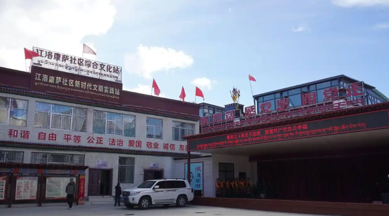江洛康萨社区成立于1988年,现有居民518户1487人,聚居着藏、汉、回、蒙古等13个民族。作为各民族商户聚集经商的繁华区域,社区依托1200平方米的新时代文明实践站,设立了志愿者服务站、图书室、六点半学校、市民学校等十多个功能场所,成为基层思想政治工作和文化惠民的重要阵地。