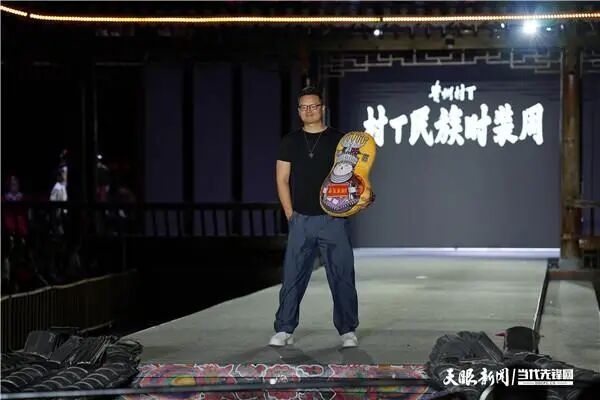 灯光摇曳,T台上民族元素与现代设计交织。国庆当晚,黔东南州凯里市苗侗风情园内,首届贵州“村T”民族时装周文创设计大赛成果展正在进行,蓝染布包、民族风抱枕、刺绣皮具、银饰挂件等文创产品纷纷亮相,通过T台与直播镜头,将民族时尚的魅力传递给现场与线上的观众。
