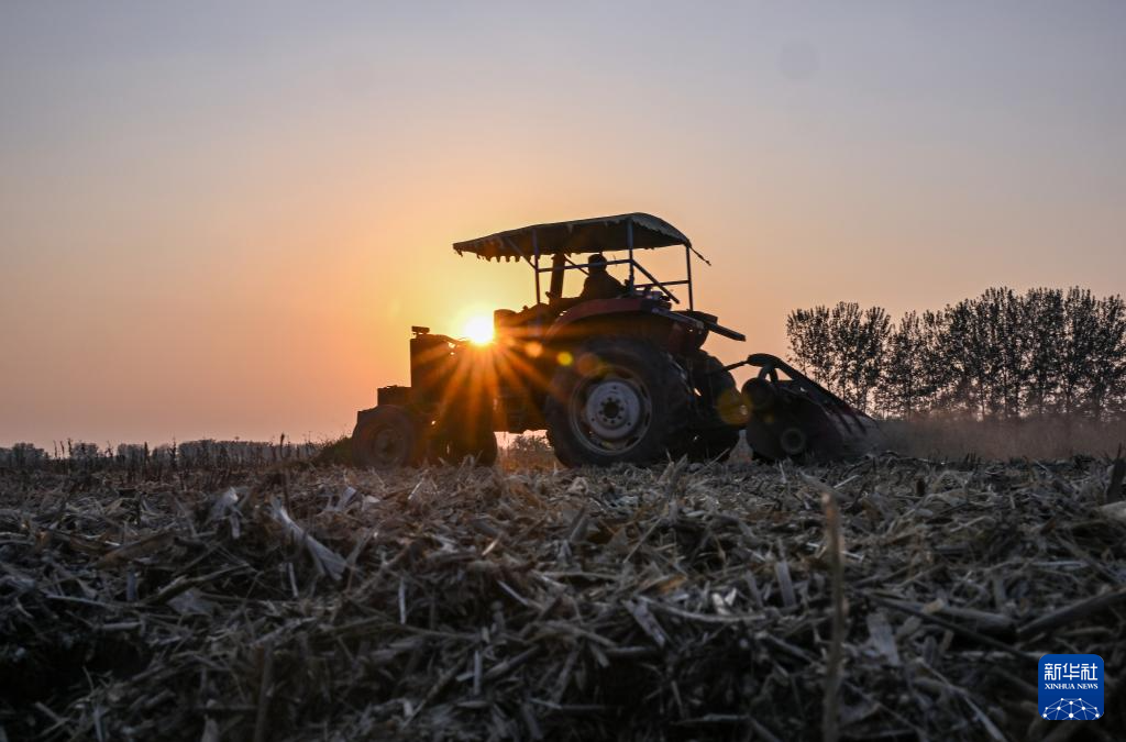 10月22日,在河南省商丘市夏邑县会亭镇,农民驾驶旋耕机在田间作业。